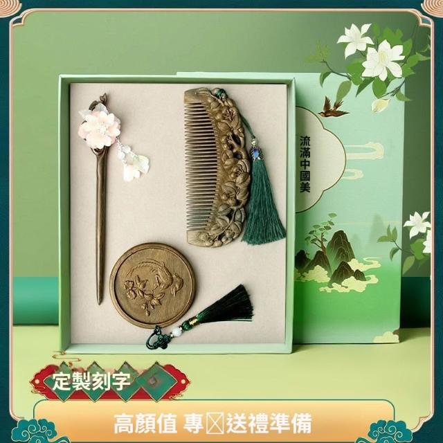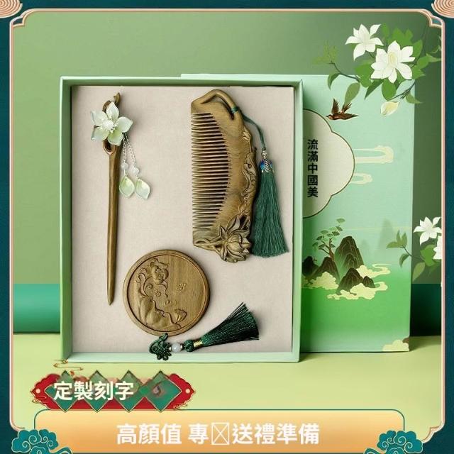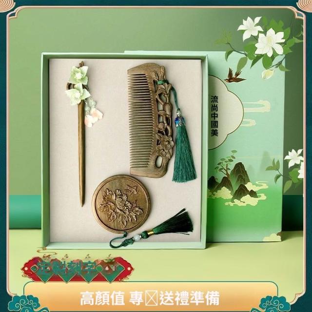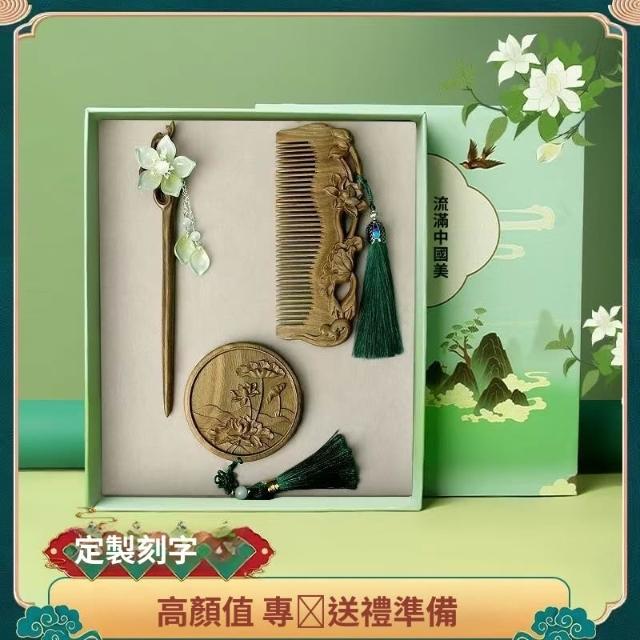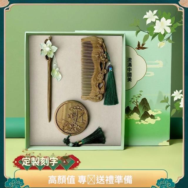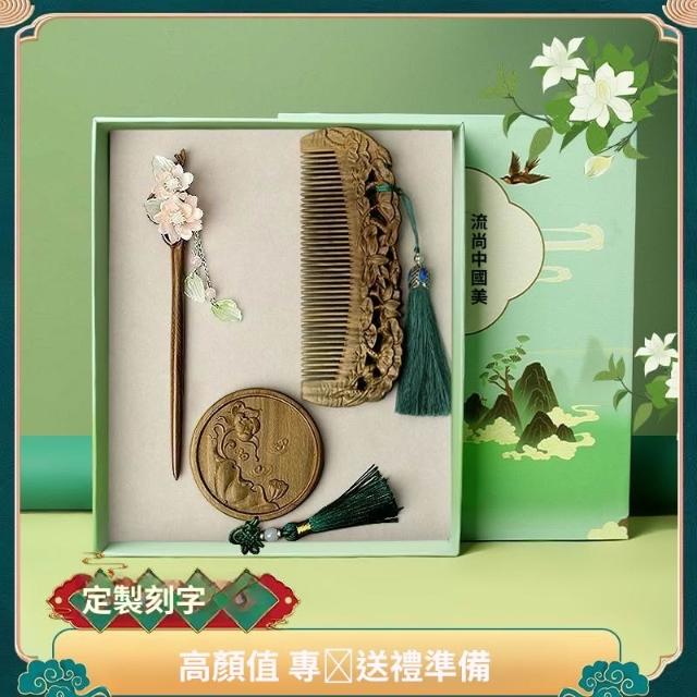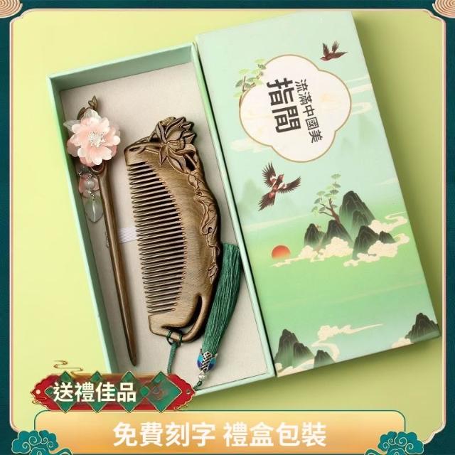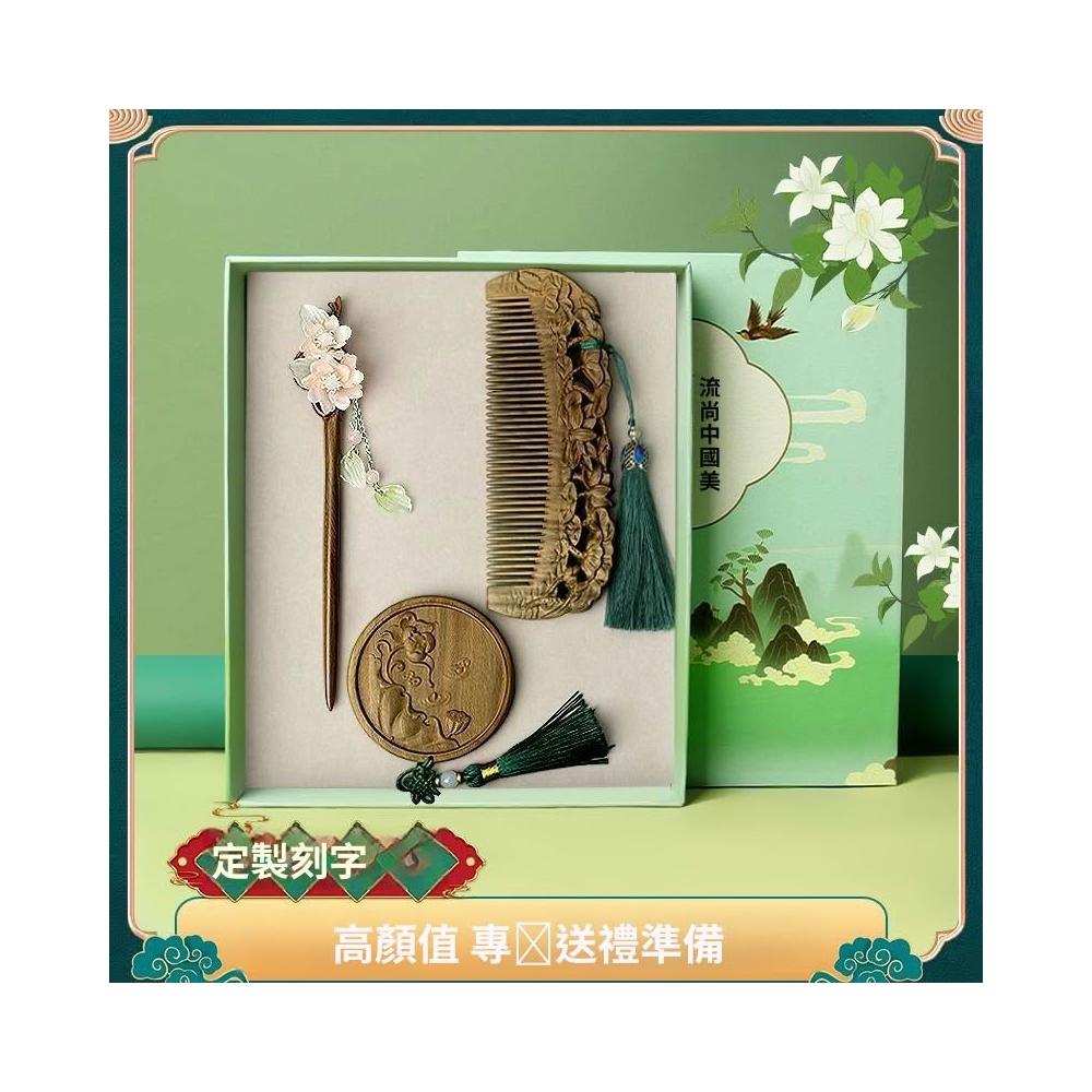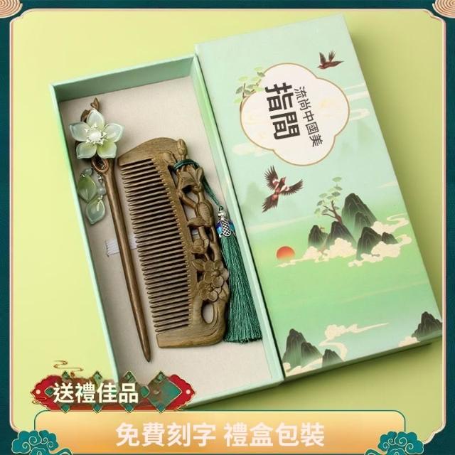 情人節 實用伴手禮 檀木梳子 發簪 按摩木梳 雕花高檔套裝 長發禮物女友 送媽媽送老師 交換禮物 b10