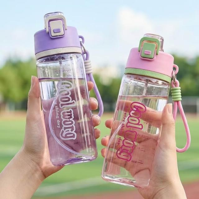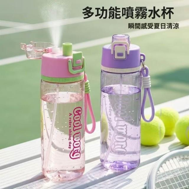 噴霧杯 防摔加厚 網紅爆款 學生帶吸管運動水杯 女生隨手杯 便攜式透明水壺 運動水壺 bb6