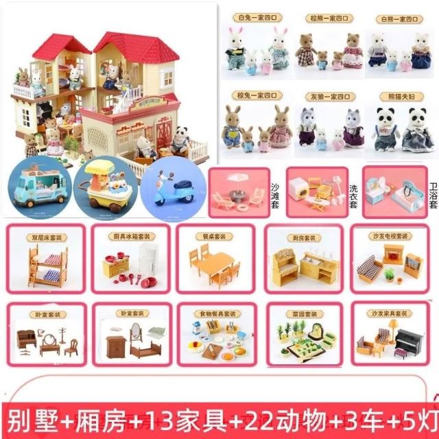 森林家族森貝兒男女孩過家家玩具物模擬動物城堡燈光大屋別墅套裝