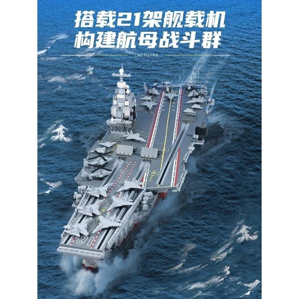 啟蒙福建艦大型航空母艦積木23018軍事拼裝積木玩具成人收藏模型