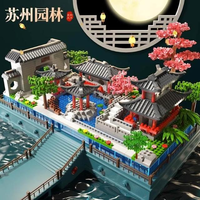 蘇州園林積木2025新款拼裝益智玩具男孩建築拼圖成人高難度巨大型