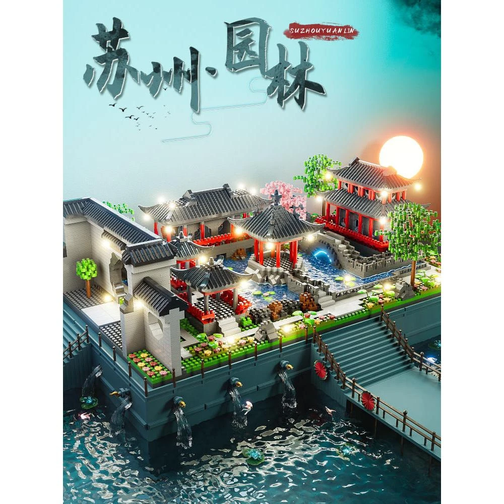 蘇州園林拼裝積木成人高難度中國建築兒童玩具男孩女拼圖生日禮物