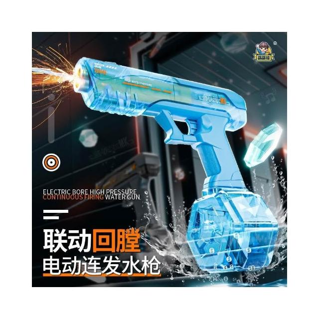新款噴火電動水槍玩具大容量聯動回膛火光爆閃全自動連發水槍