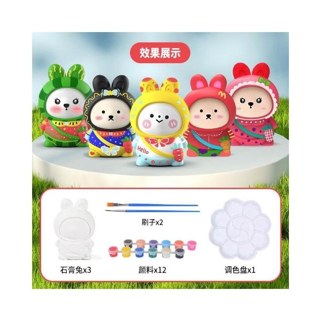 兒童手工Diy石膏兔寶寶白胚彩繪塗鴉上色小兔子擺件網紅石膏娃娃