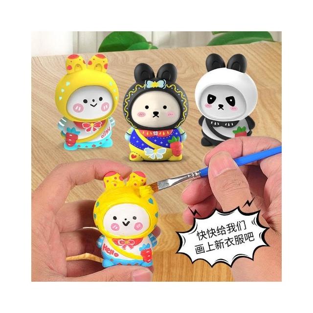 兒童手工Diy石膏兔寶寶白胚彩繪塗鴉上色小兔子擺件網紅石膏娃娃