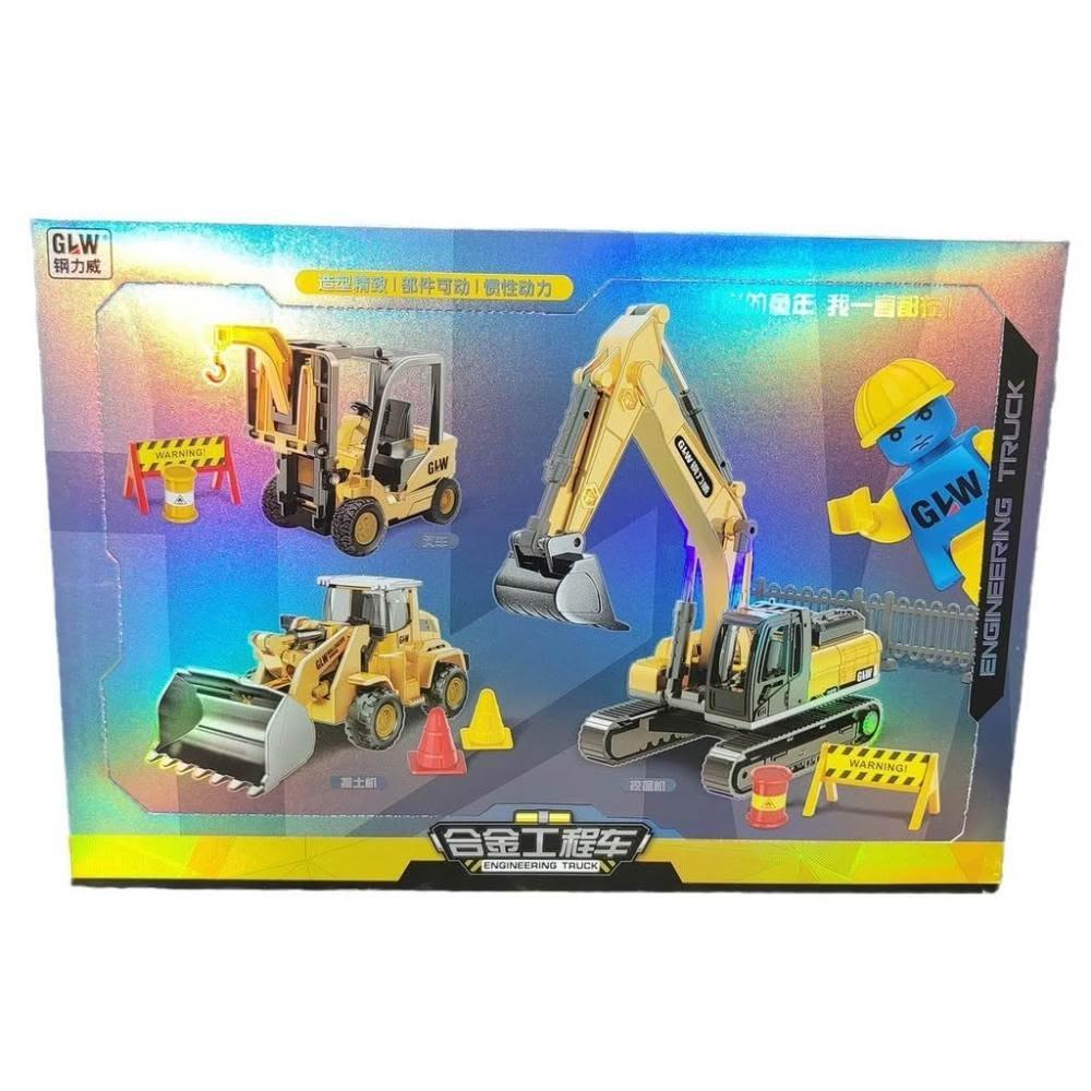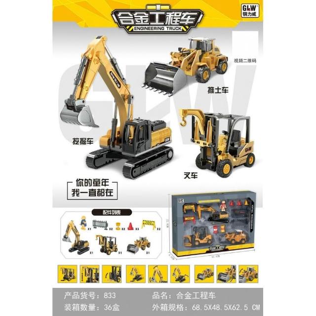 合金慣性動力工程車套裝挖掘機推土機叉舉車模型兒童玩具禮品