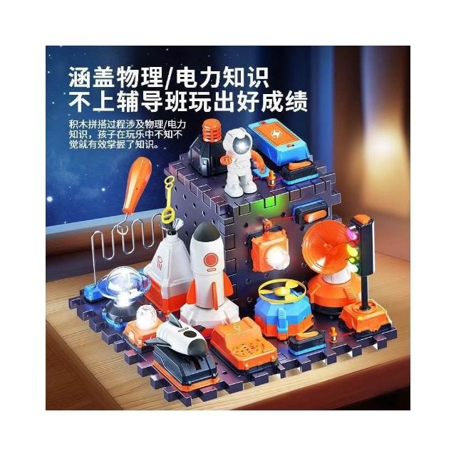 學優馬電子積木兒童航天火箭模型拼裝玩具電路實驗小學生生日禮物