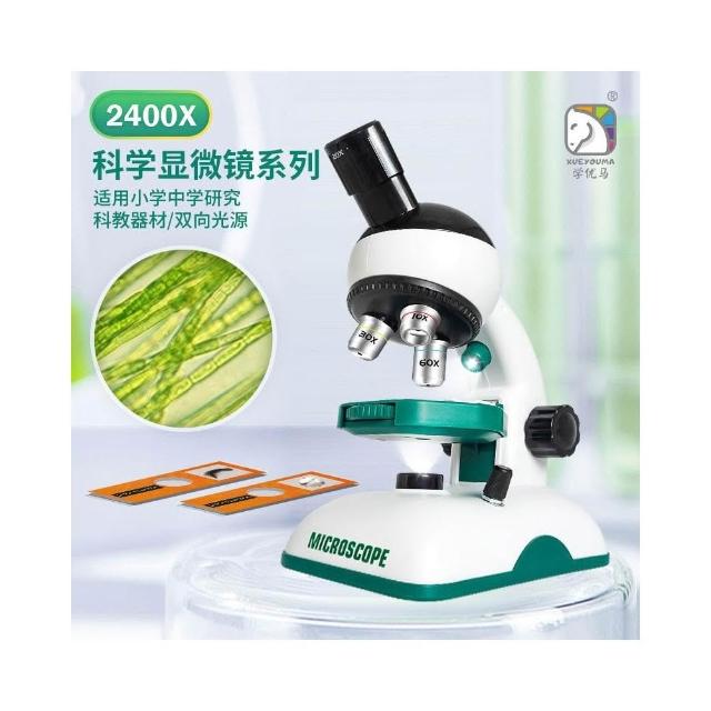 學優馬台式科學顯微鏡套裝小學生生物實驗光學2400X專業玩具