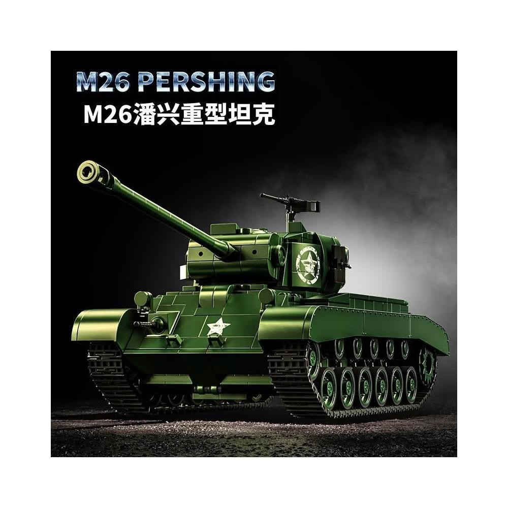 97011二戰美國M26潘興重型坦克高難度拼插裝益智積木玩具