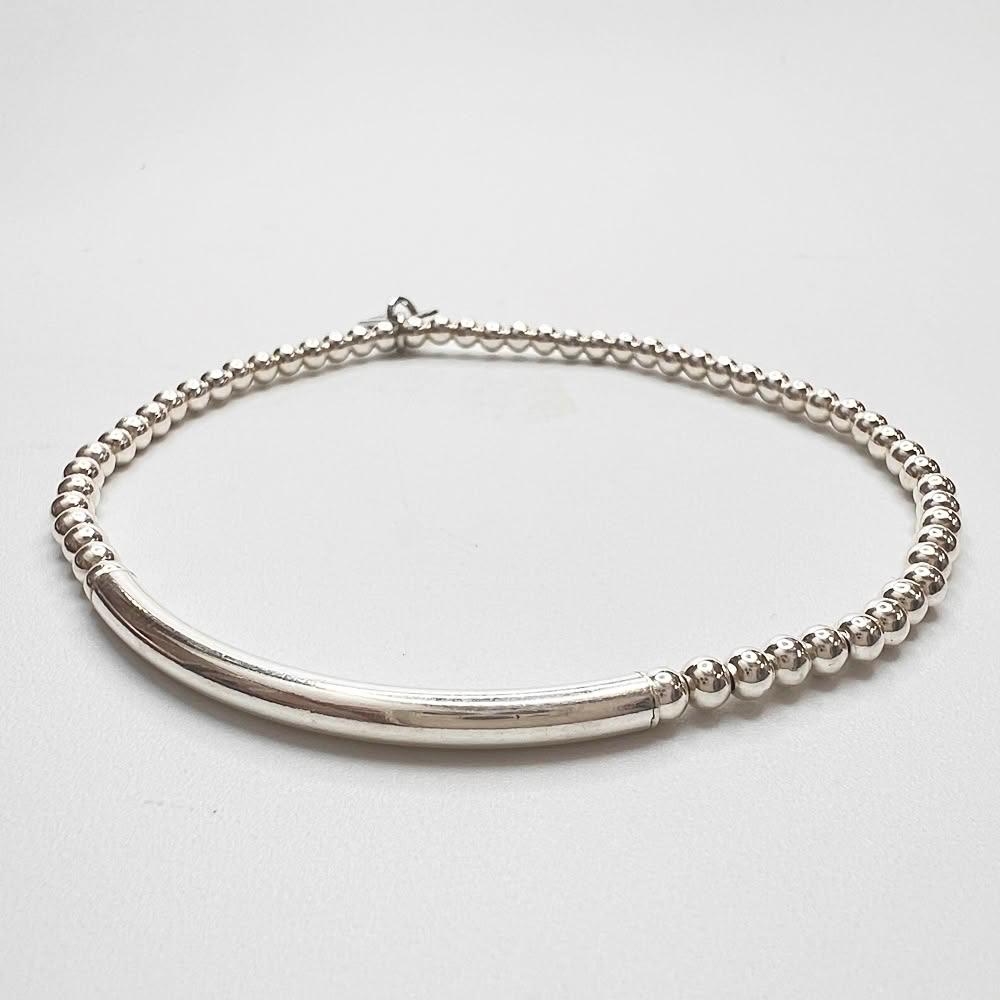 JOYSTONE925銀珠x銀管-3mm銀珠-純銀手鍊手串手環-彈性手圍-15-17cm