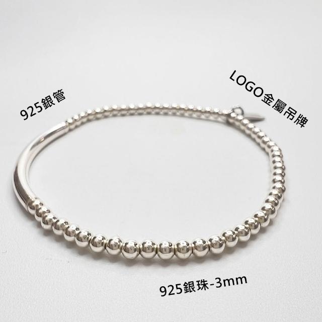JOYSTONE925銀珠x銀管-3mm銀珠-純銀手鍊手串手環-彈性手圍-15-17cm