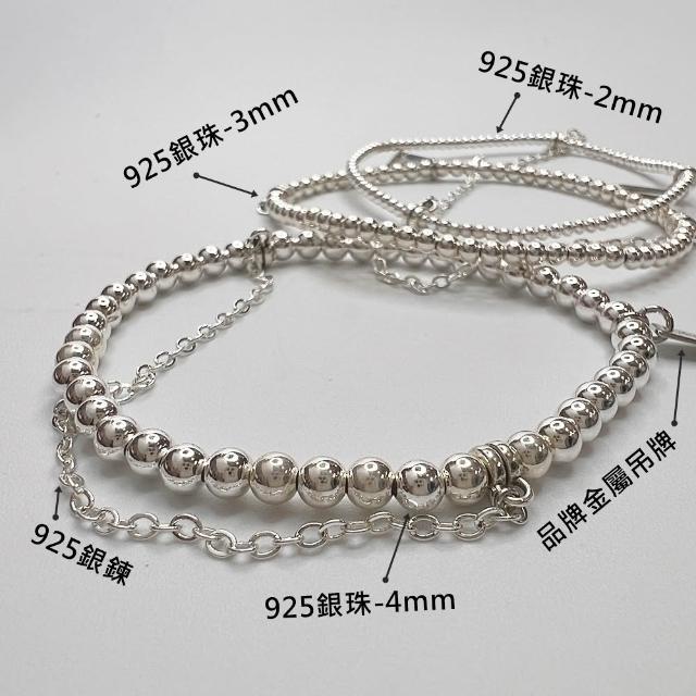 JOYSTONE925銀珠x銀鍊-選銀珠2mm 3mm 4mm-純銀手鍊手串手環-彈性手圍-15-17cm