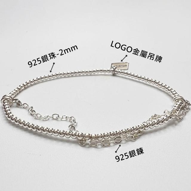 JOYSTONE925銀珠x銀鍊-2mm銀珠-純銀手鍊手串手環-彈性手圍-15-17cm
