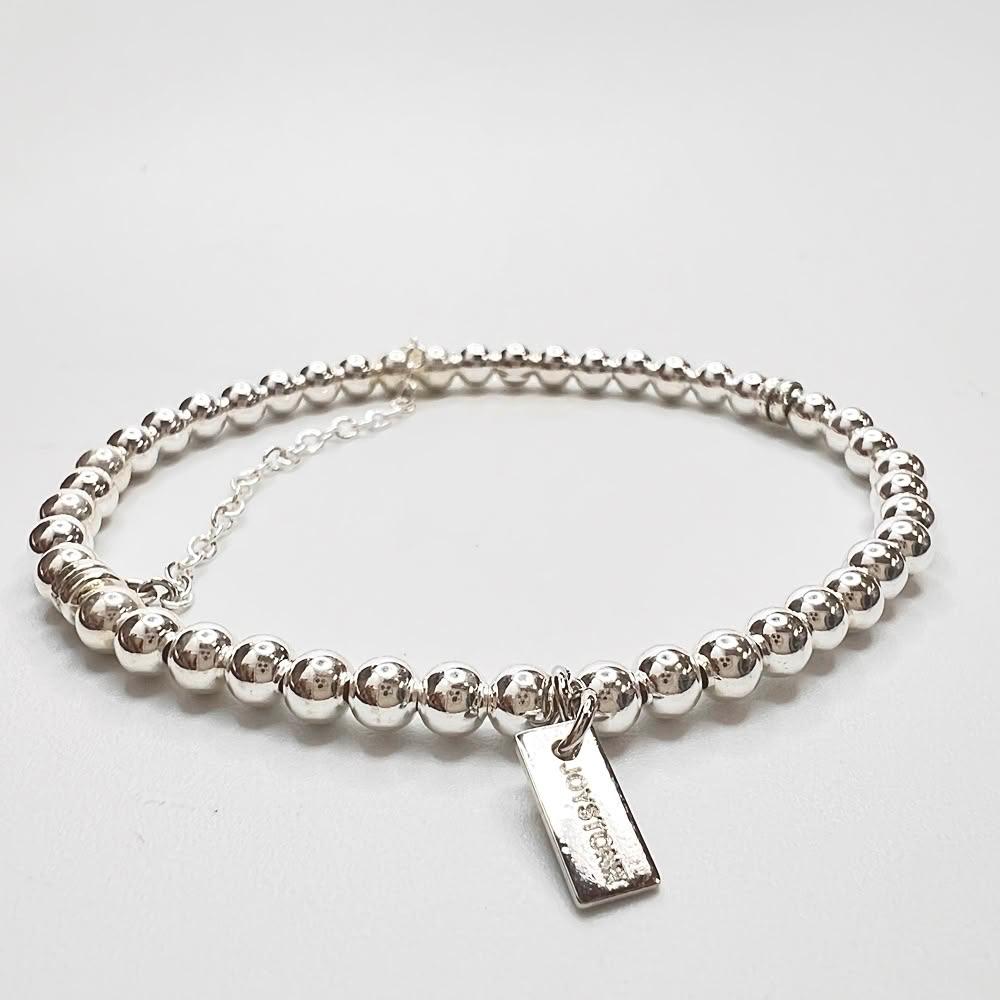 JOYSTONE925銀珠x銀鍊-4mm銀珠-純銀手鍊手串手環-彈性手圍-15-17cm