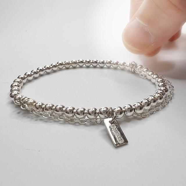 JOYSTONE925銀珠x銀鍊-4mm銀珠-純銀手鍊手串手環-彈性手圍-15-17cm