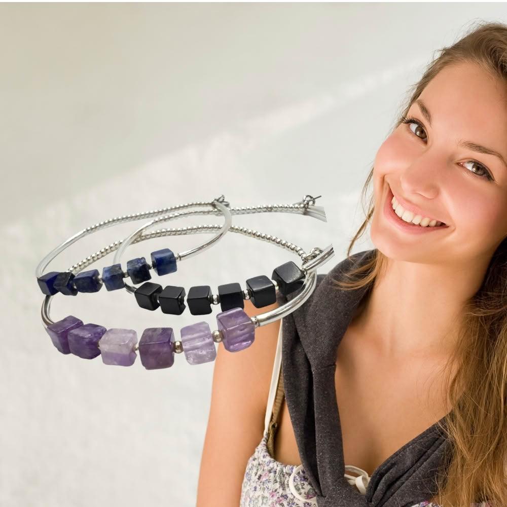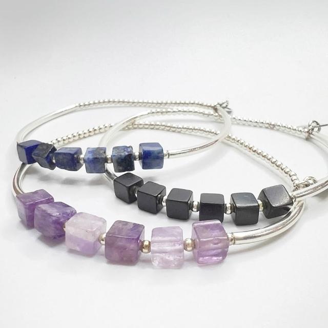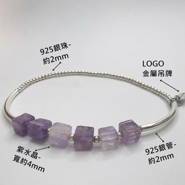 JOYSTONE925銀珠x銀管x天然石-貴人石紫水晶-平安石青金石-富足石黑瑪瑙-水晶純銀手環手鍊手串-彈性手圍-15-17cm-寬約4mm