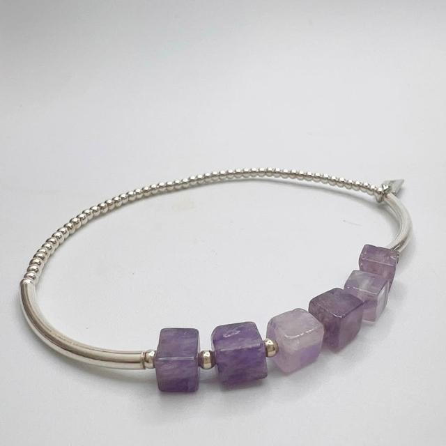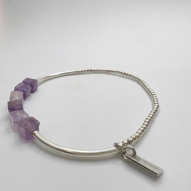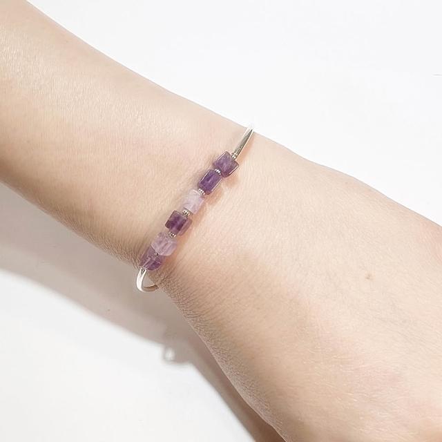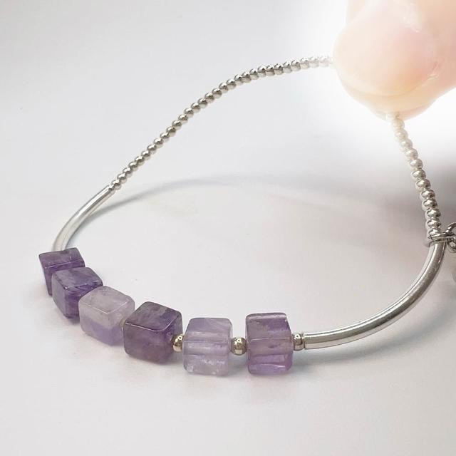 JOYSTONE925銀珠x銀管x天然石-紫水晶-貴人石-水晶純銀手環手鍊手串-彈性手圍-15-17cm-寬約4mm