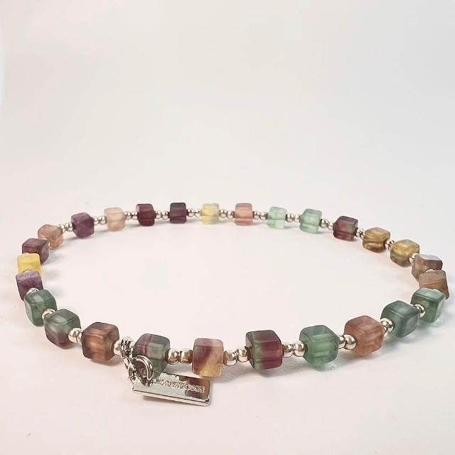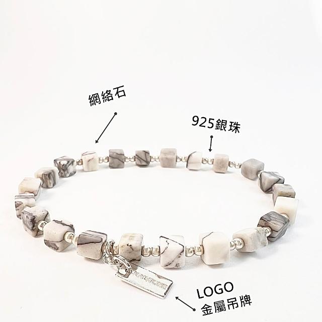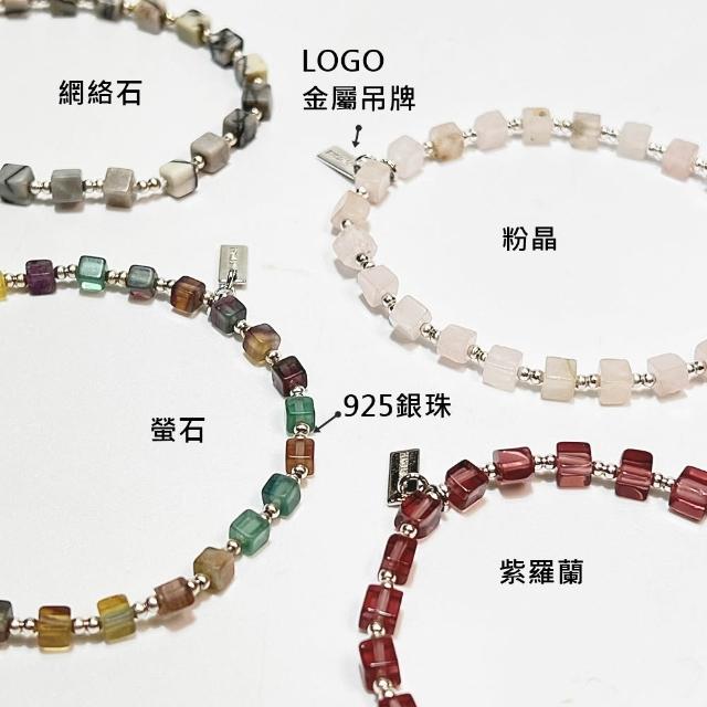 JOYSTONE925銀珠x天然石-轉好運網絡石-愛情石粉晶-正向思考紫羅蘭石-靜心療癒螢石--水晶-純銀手環手鍊手串-彈性手圍-15-17cm-寬約4mm