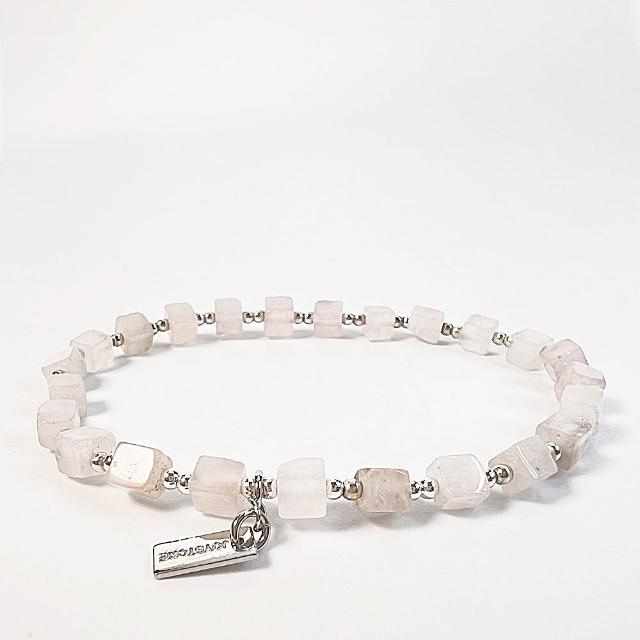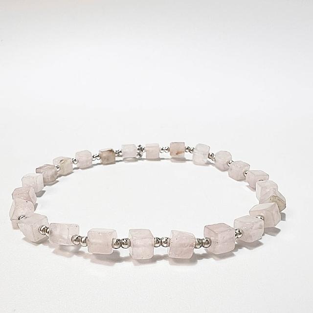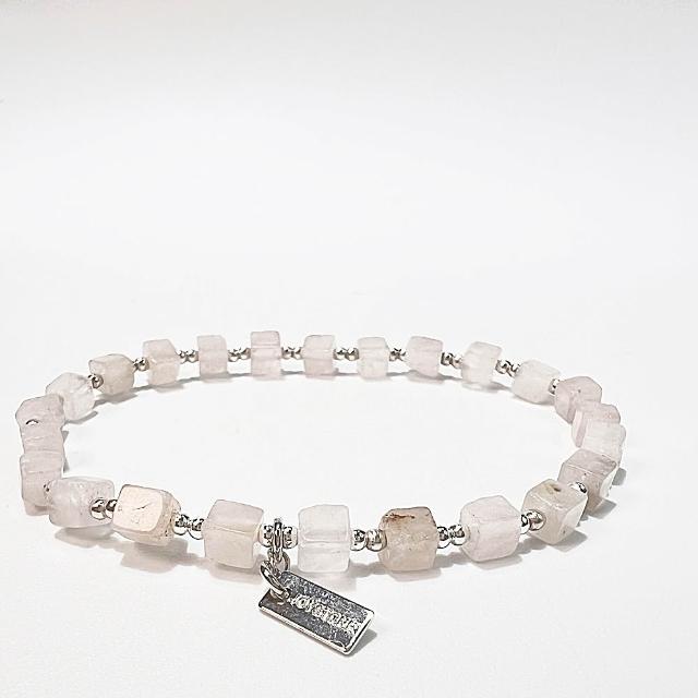 JOYSTONE925銀珠x粉晶-愛情石-天然石-水晶-純銀手環手鍊手串-彈性手圍-15-17cm-寬約4mm