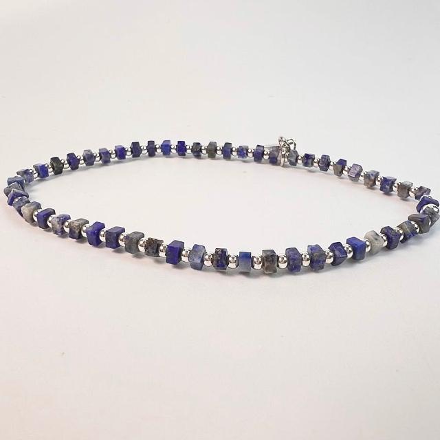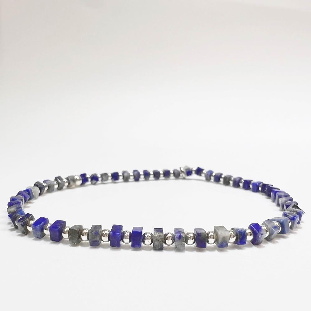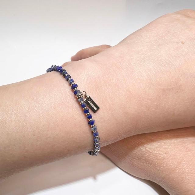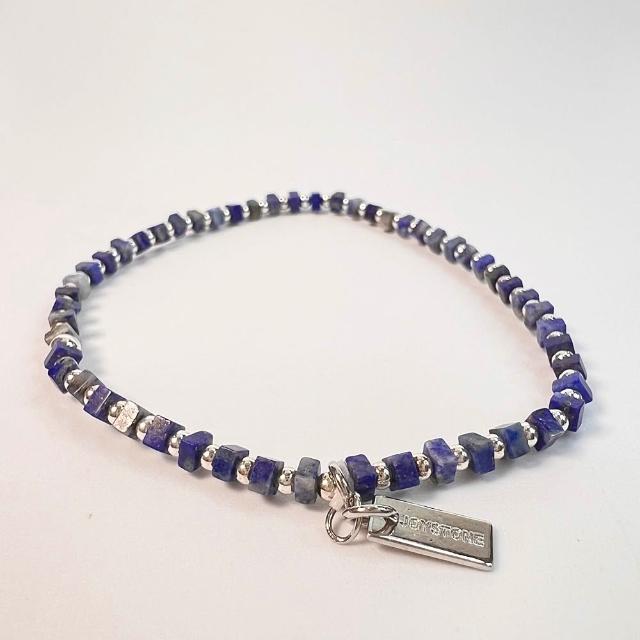 JOYSTONE925銀珠x青金石-平安及醫治石-天然石-水晶-純銀手環手鍊手串-彈性手圍-15-17cm-寬約2mm