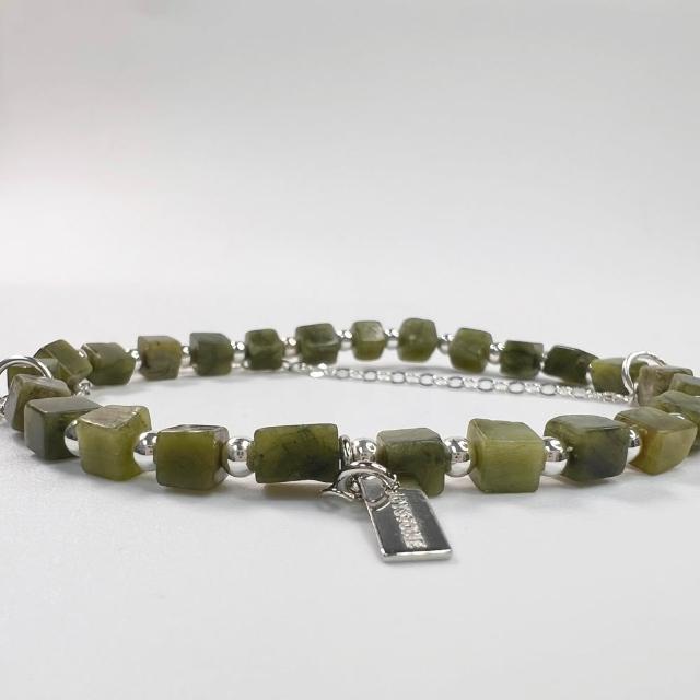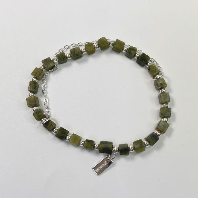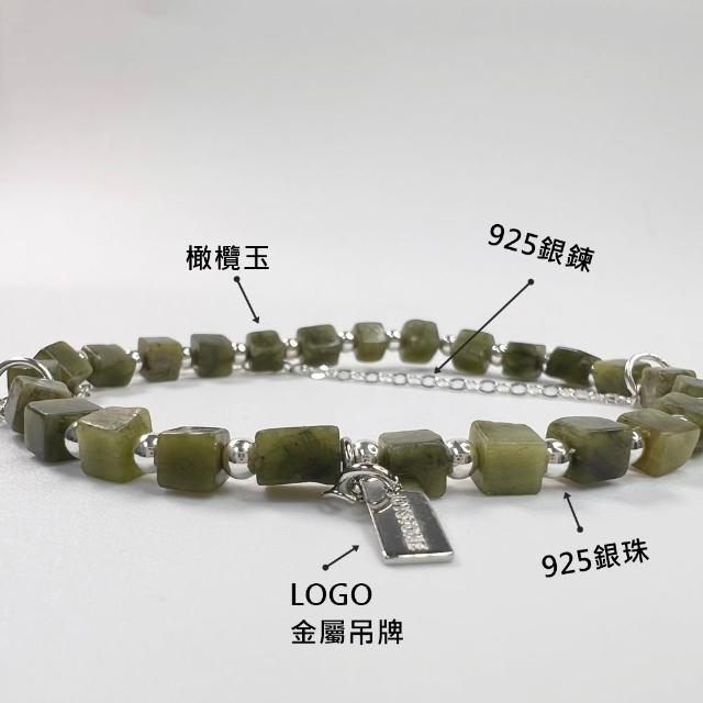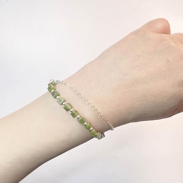 JOYSTONE925銀珠x銀鍊x橄欖玉-幸福富足石-天然石-水晶-純銀手環手鍊手串-彈性手圍-15-17cm-寬約4mm