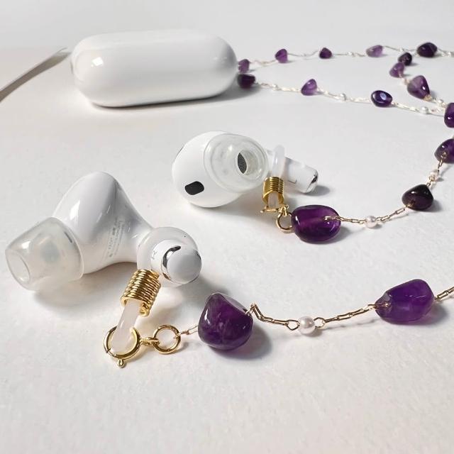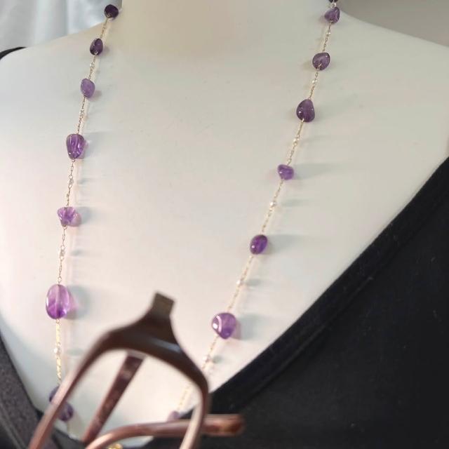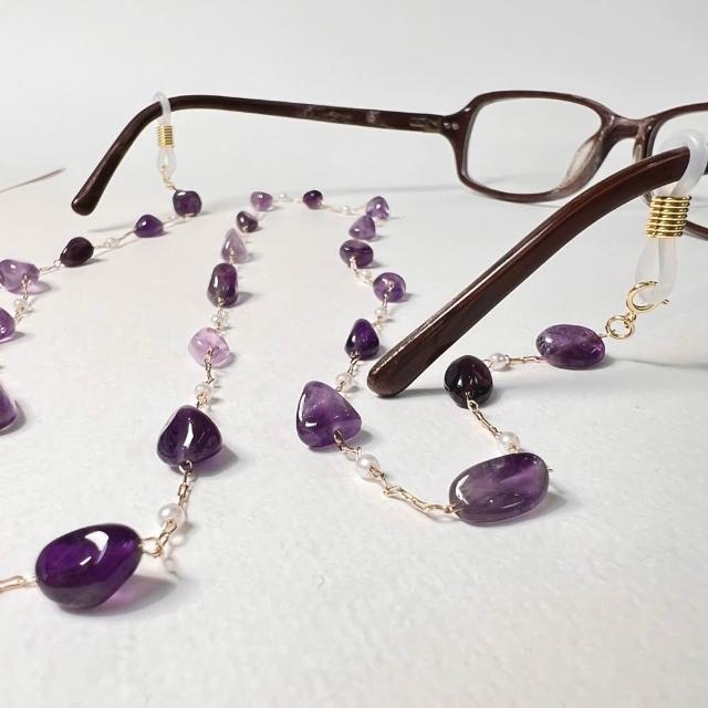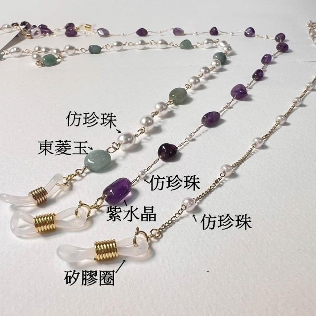 JOYSTONE多用途仿珍珠中長鍊-可當作眼鏡鍊-藍芽耳機鍊-口罩鍊-中長鍊-天然水晶x仿珍珠-3款-紫水晶 東菱玉 仿珍珠 長度75cm-可調式矽膠掛環,適用大部分眼鏡 老花眼鏡 近視眼鏡 太陽眼鏡 藍芽耳機 中長鍊