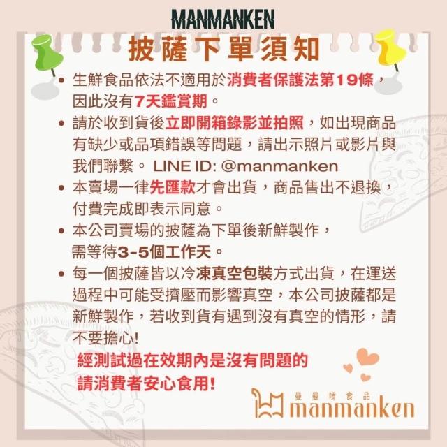 曼曼啃食品海鮮系列 6吋手工薄脆披薩pizza 氣炸鍋烤箱 一人獨享 (曼曼海鮮/青醬海鮮/松露白醬海鮮)