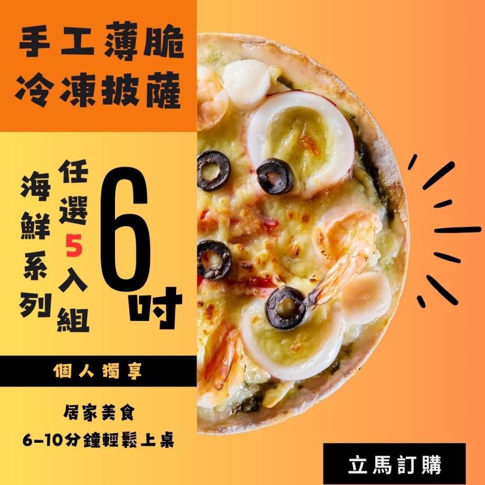 曼曼啃食品任選五件優惠 海鮮系列 6吋手工薄脆披薩pizza 氣炸鍋烤箱 一人獨享 (曼曼海鮮/青醬海鮮/松露白醬海鮮)