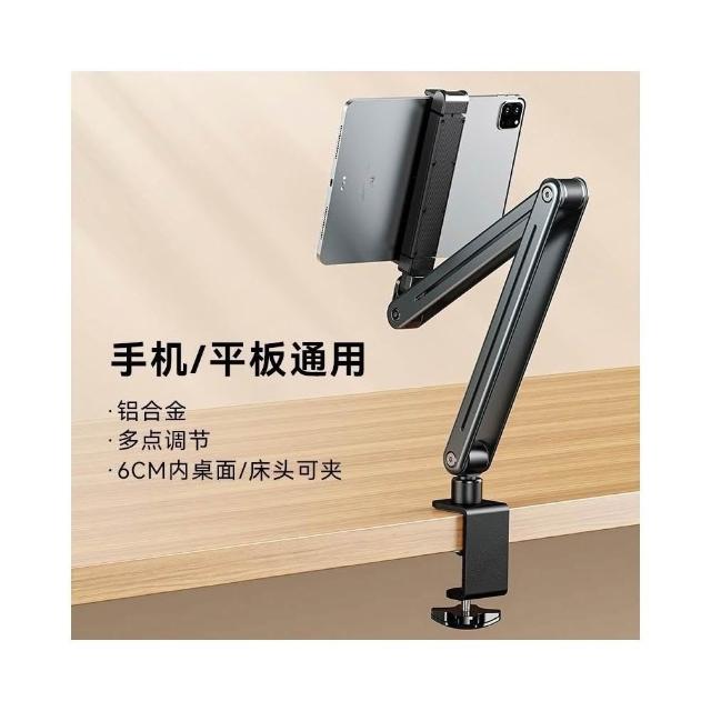 桌面夾式鋁合金雙手機支架 床頭手機架 可360度旋轉平板支架 躺平追劇通用懶人支架 萬象懸臂手機架