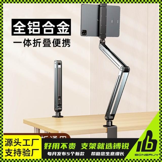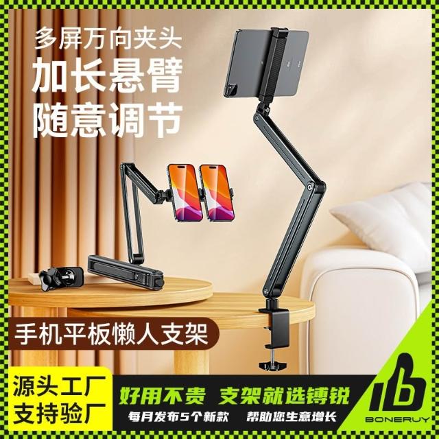 桌面夾式鋁合金雙手機支架 床頭手機架 可360度旋轉平板支架 躺平追劇通用懶人支架 萬象懸臂手機架