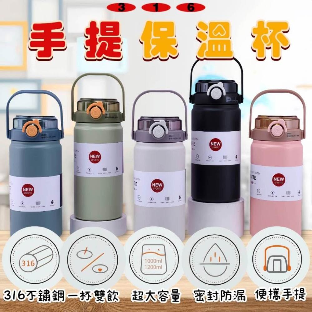 吸管水壺 雙飲手提保溫杯 316不鏽鋼保溫杯 安全鎖扣 大容量水壺 1000ML 1200ML 保冰 保溫