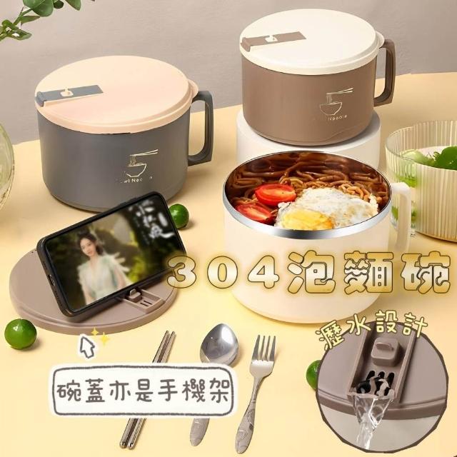 304泡麵碗 瀝水泡麵碗 大容量泡麵碗 1100ml 1700ml 帶蓋泡麵碗 手機支架碗蓋 304不鏽鋼 隔熱碗