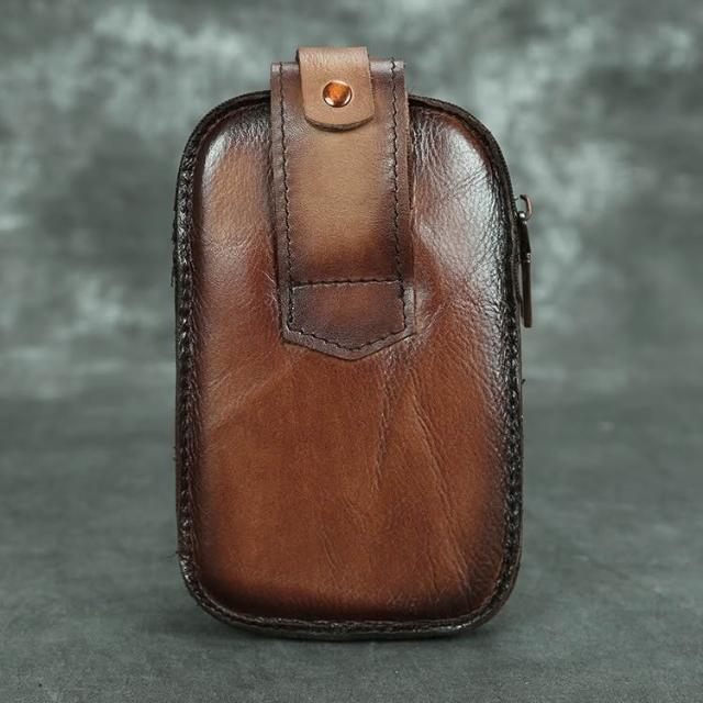瘋馬皮腰包 頭層牛皮 臺灣現貨 真皮腰包 瘋馬皮手機包 腰掛包 掀蓋腰包 磁扣腰包 手機包