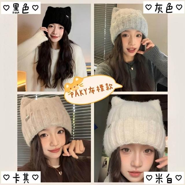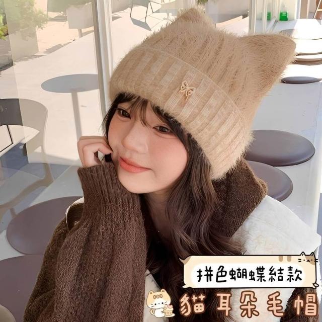 貓耳朵帽 毛線帽 臺灣現貨24H可出 貓耳帽 毛帽 雙層加絨毛帽 蝴蝶結毛帽 立體貓耳朵 造型毛帽 帽子 針織帽 毛毛帽