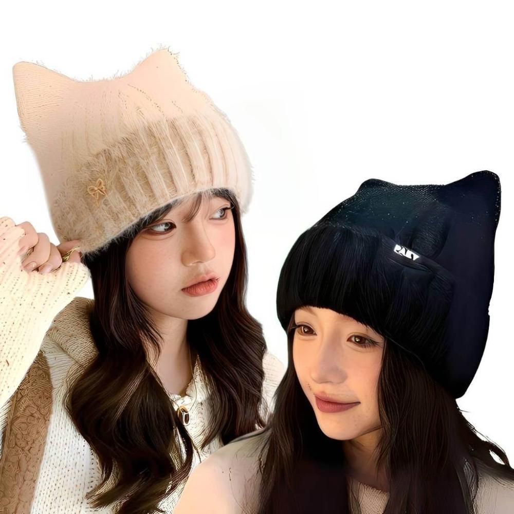 貓耳朵帽 毛線帽 臺灣現貨24H可出 貓耳帽 毛帽 雙層加絨毛帽 蝴蝶結毛帽 立體貓耳朵 造型毛帽 帽子 針織帽 毛毛帽