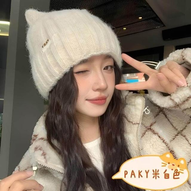 貓耳朵帽 毛線帽 臺灣現貨24H可出 貓耳帽 毛帽 雙層加絨毛帽 蝴蝶結毛帽 立體貓耳朵 造型毛帽 帽子 針織帽 毛毛帽