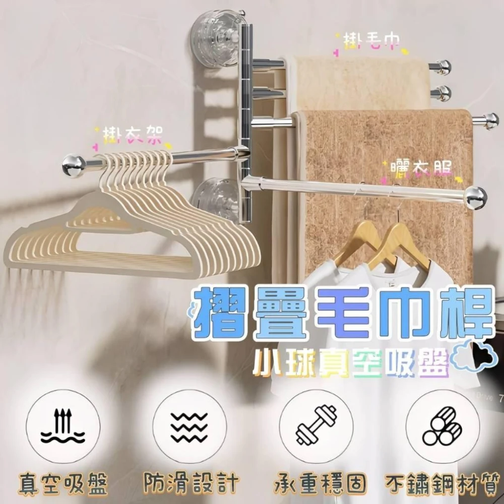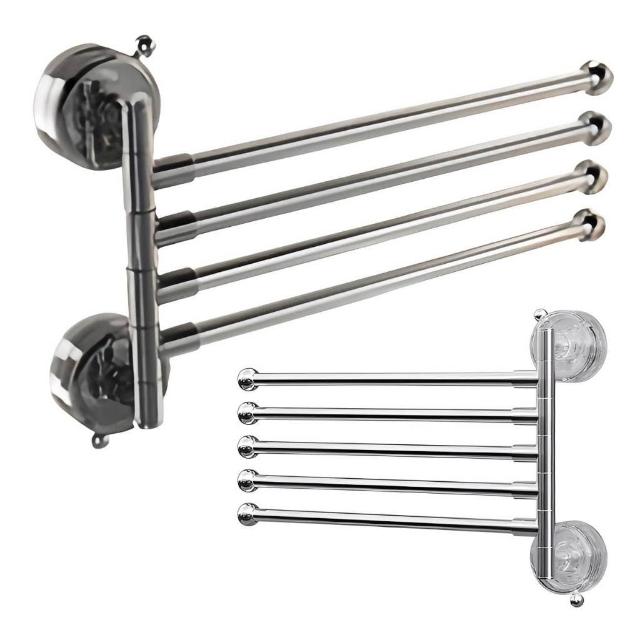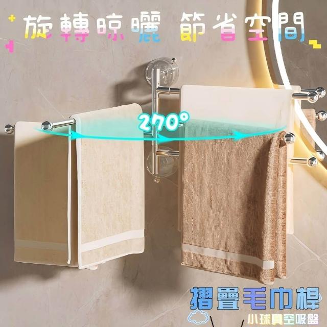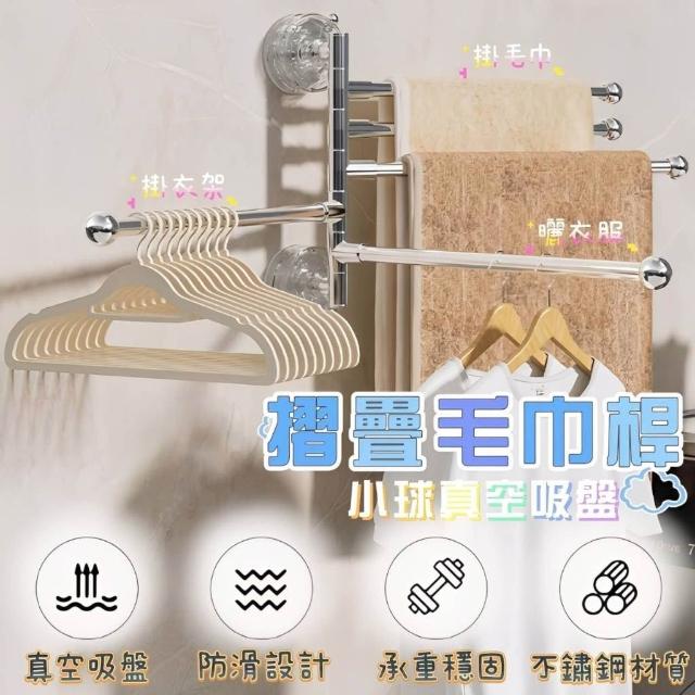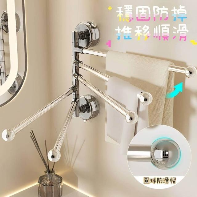 毛巾架 旋轉多桿置物架 臺灣現貨24H可出 真空吸盤 旋轉毛巾架 毛巾掛桿 晾曬桿 轉角 掛東西 不鏽鋼 桿子 無痕收納