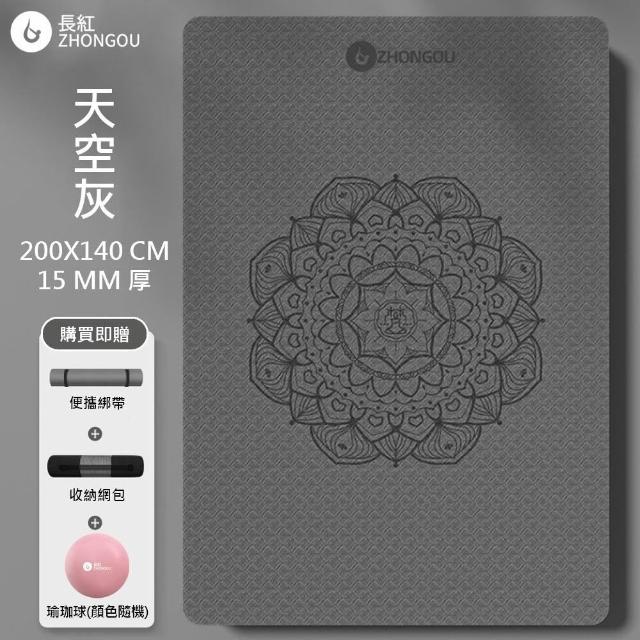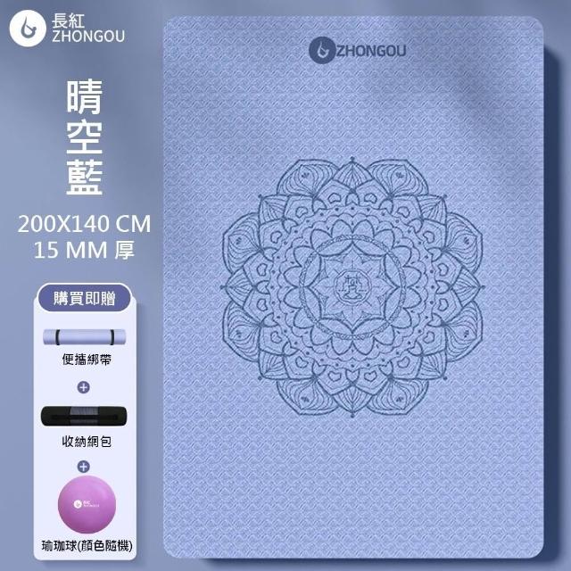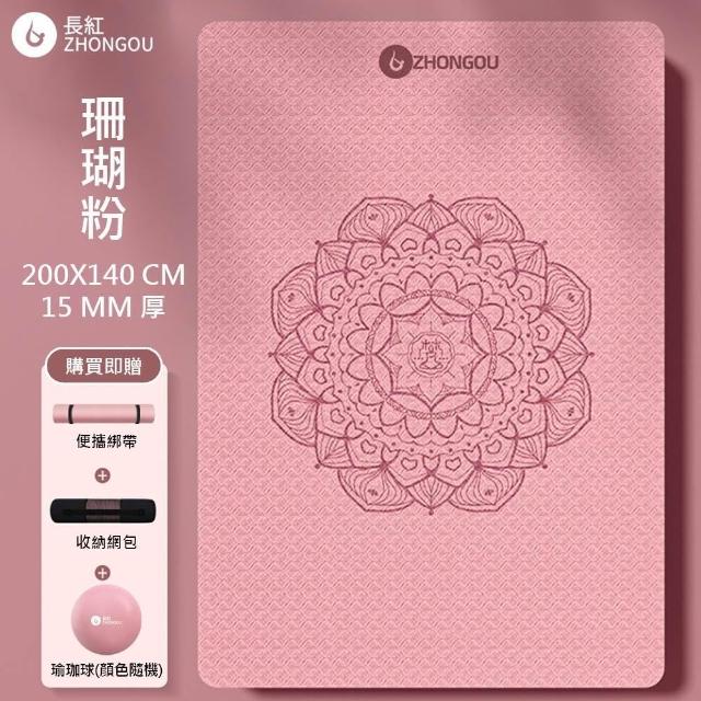 長紅長紅買1送3 TPE加厚加寬雙人款15MM厚 200x140CM 瑜珈墊TP201415(贈綁帶、背袋、皮拉提斯球)