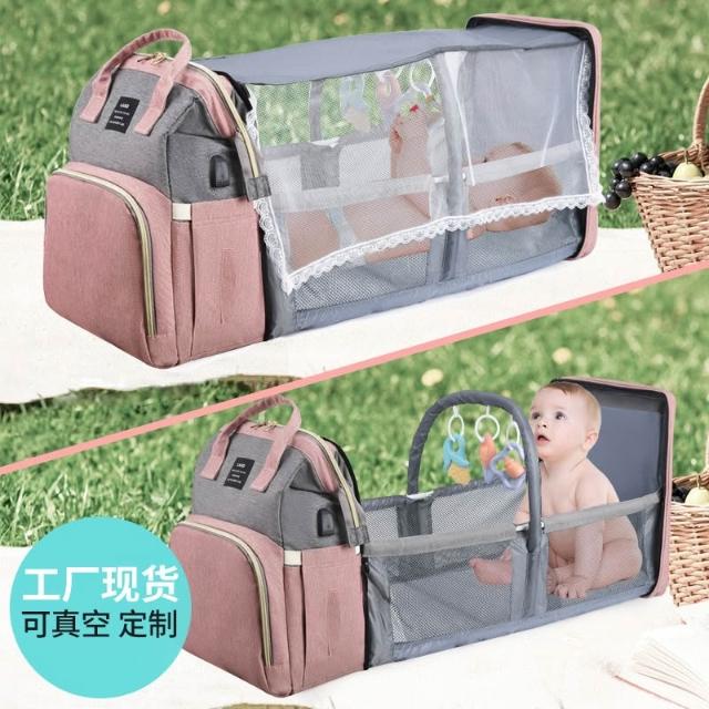 大容量多功能媽咪包(帶蚊帳/附贈玩具/可躺媽咪包/雙肩後背包/母嬰包/推車掛袋)