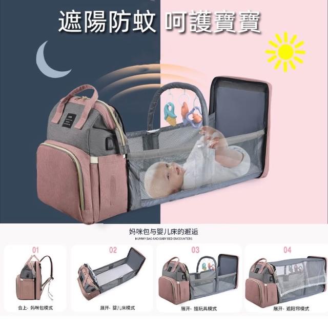 大容量多功能媽咪包(帶蚊帳/附贈玩具/可躺媽咪包/雙肩後背包/母嬰包/推車掛袋)