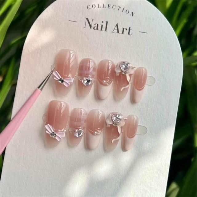法式手工穿戴式美甲(可拆卸/氣質/高級感/光療指甲/美甲貼片/富家甜心千金/法式手工貼片)