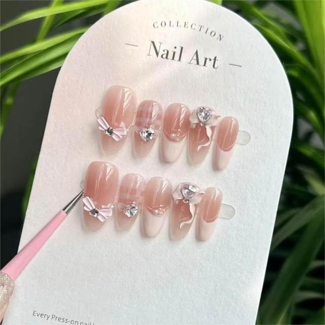 法式手工穿戴式美甲(可拆卸/氣質/高級感/光療指甲/美甲貼片/富家甜心千金/法式手工貼片)