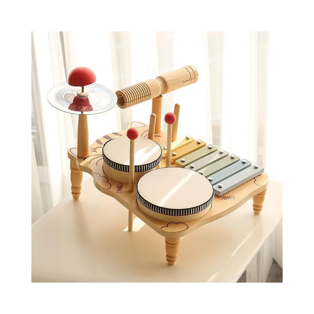 兒童架子鼓(木質寶寶打擊樂器/敲琴/打鼓/小貓音樂臺/寶寶手拍鼓/早教音樂玩具/奧爾夫樂器)
