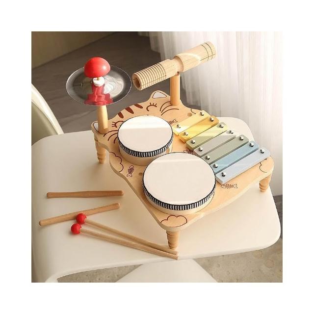 兒童架子鼓(木質寶寶打擊樂器/敲琴/打鼓/小貓音樂臺/寶寶手拍鼓/早教音樂玩具/奧爾夫樂器)