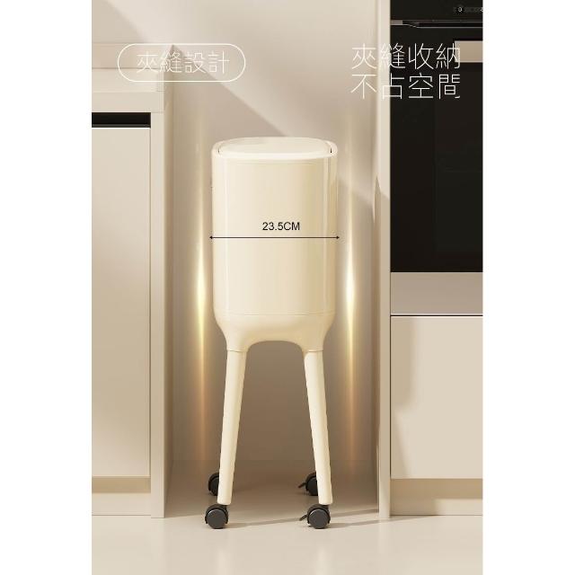 高腳垃圾桶(免彎腰/奶油風大容量垃圾桶/帶輪/可移動垃圾桶/帶蓋垃圾桶/按壓開蓋/廁所/廚房)