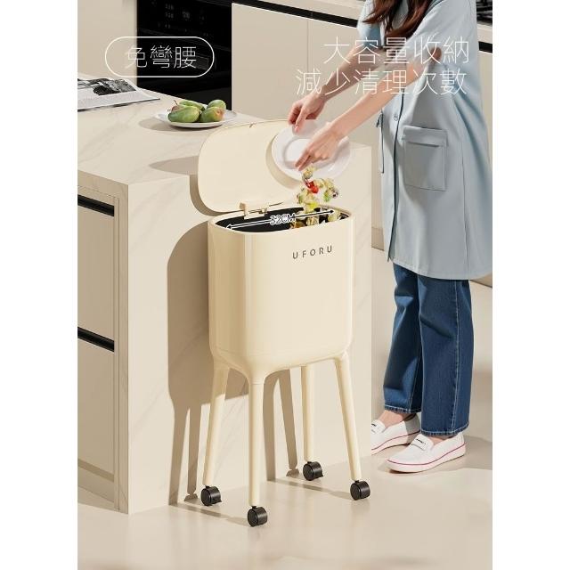 高腳垃圾桶(免彎腰/奶油風大容量垃圾桶/帶輪/可移動垃圾桶/帶蓋垃圾桶/按壓開蓋/廁所/廚房)