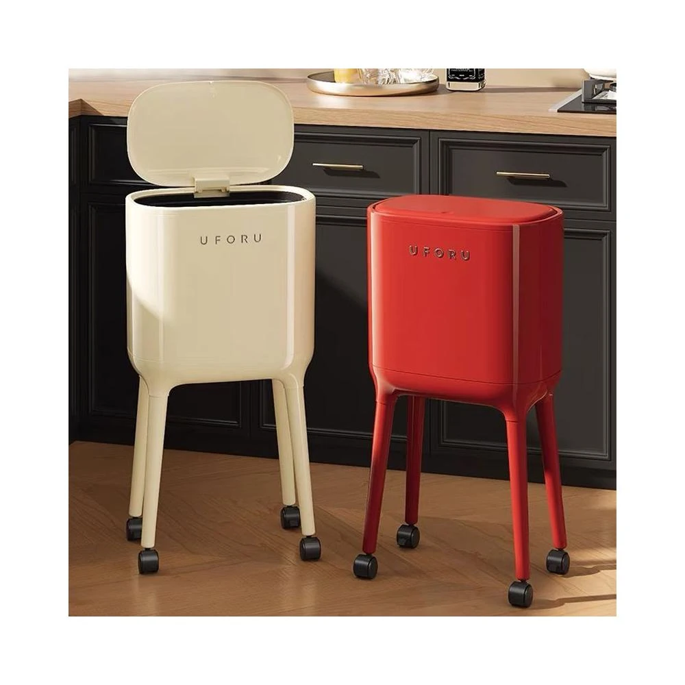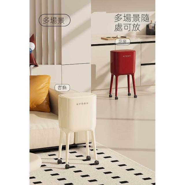 高腳垃圾桶(免彎腰/奶油風大容量垃圾桶/帶輪/可移動垃圾桶/帶蓋垃圾桶/按壓開蓋/廁所/廚房)