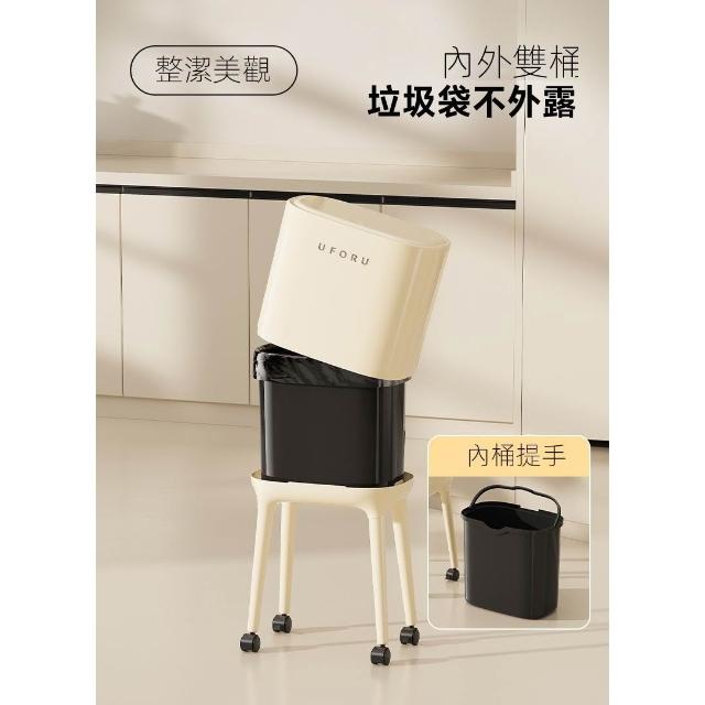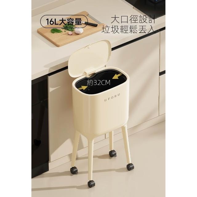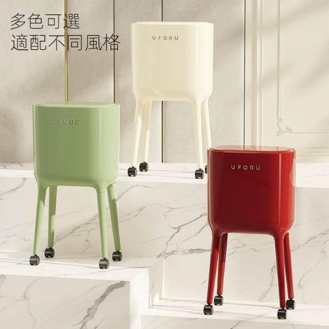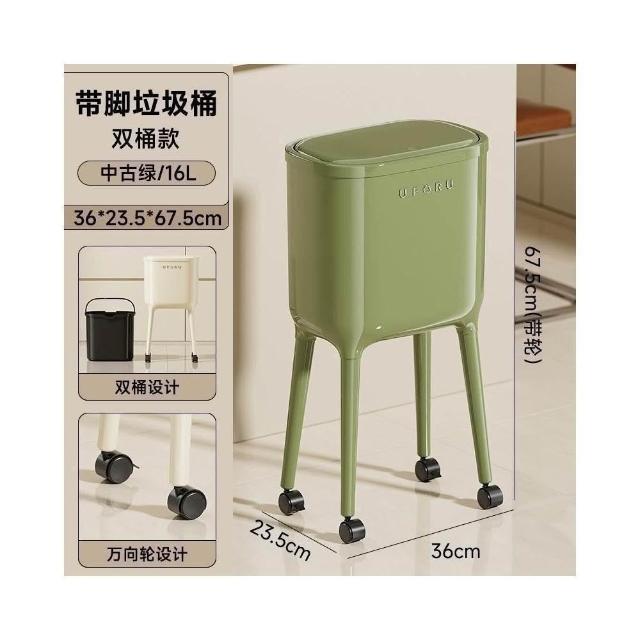 高腳垃圾桶(免彎腰/奶油風大容量垃圾桶/帶輪/可移動垃圾桶/帶蓋垃圾桶/按壓開蓋/廁所/廚房)