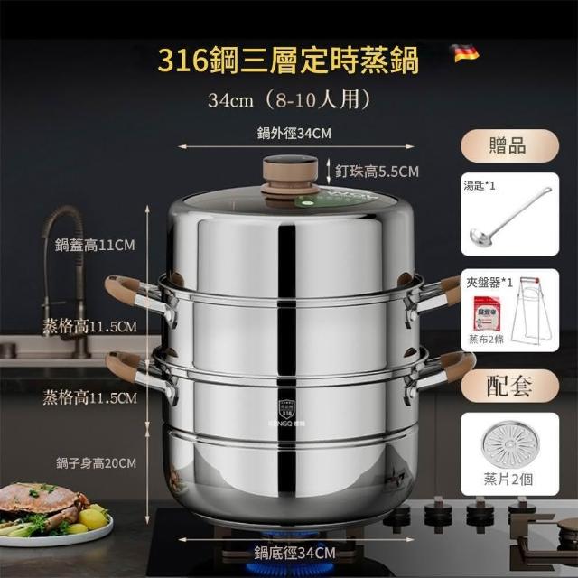 Felsted 菲仕德食品級316不銹鋼蒸鍋 定時蒸鍋/蒸籠屜/多層蒸鍋/蒸煮鍋/多功能蒸鍋(湯鍋+蒸籠+蓋/買一贈四)