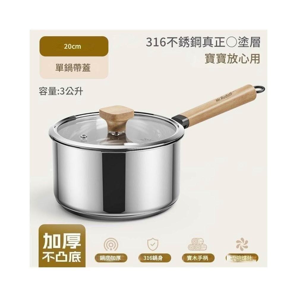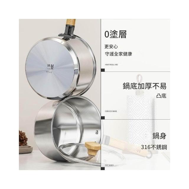 Felsted 菲仕德316不銹鋼無塗層牛奶鍋 不粘鍋 輔食鍋 小奶鍋 小湯鍋 煮鍋 蒸鍋 蒸煮鍋 鍋具 蒸籠(16cn 18cm 20cm)